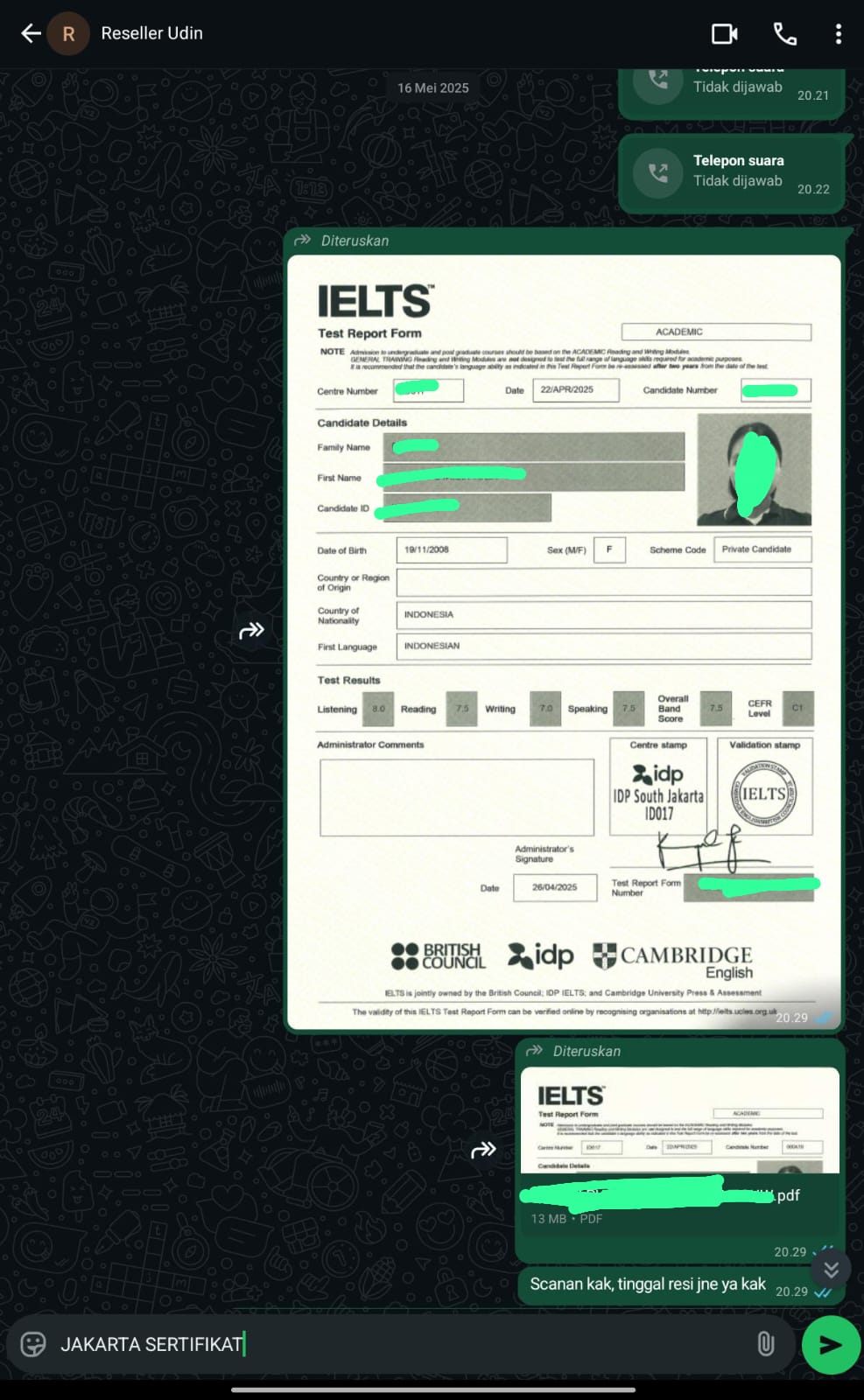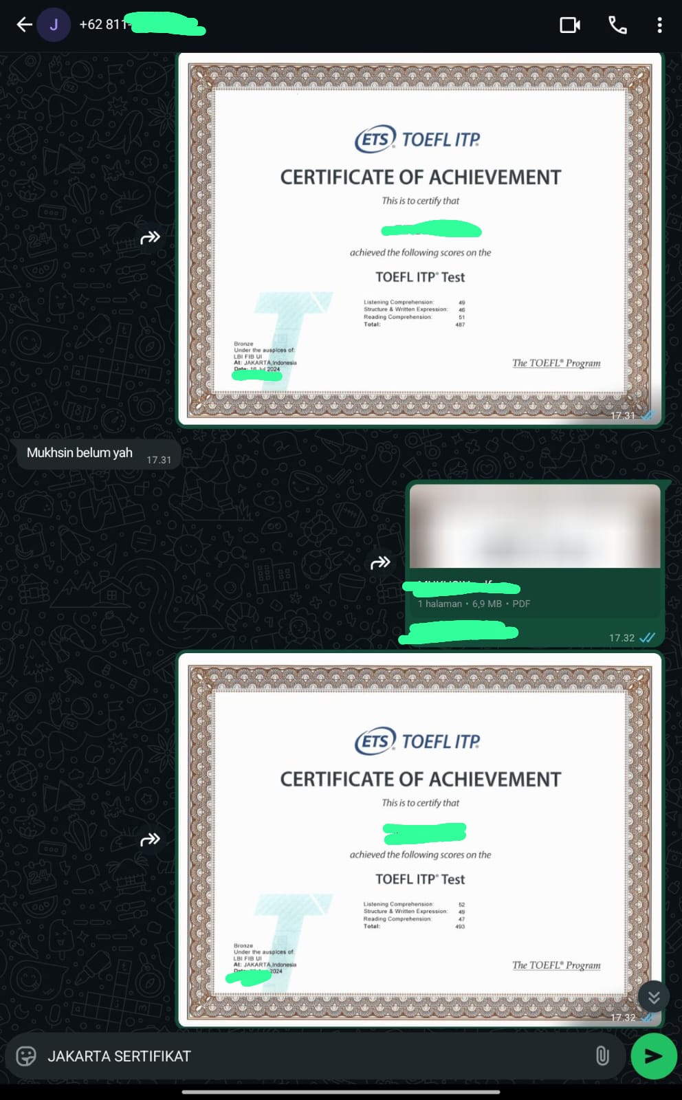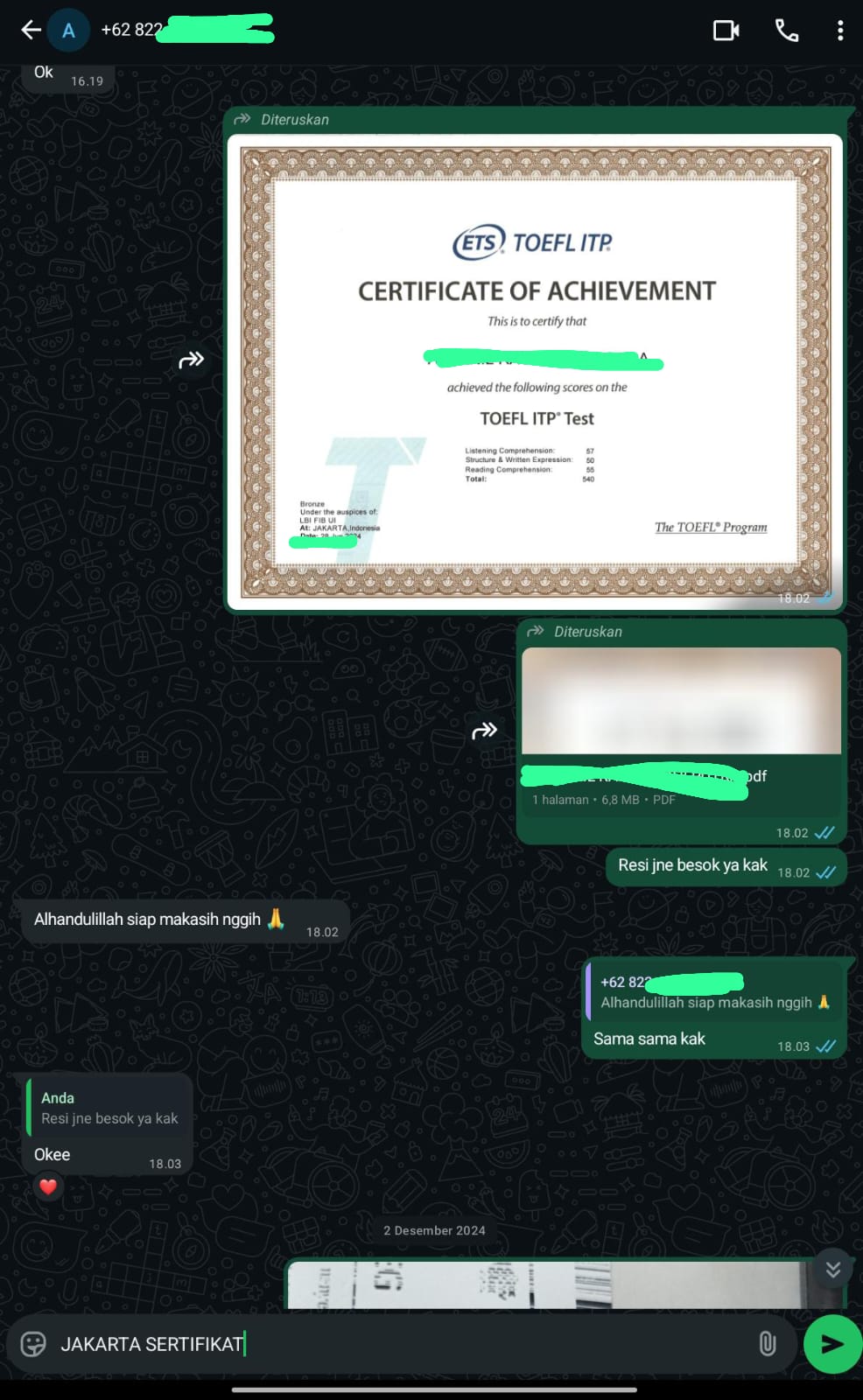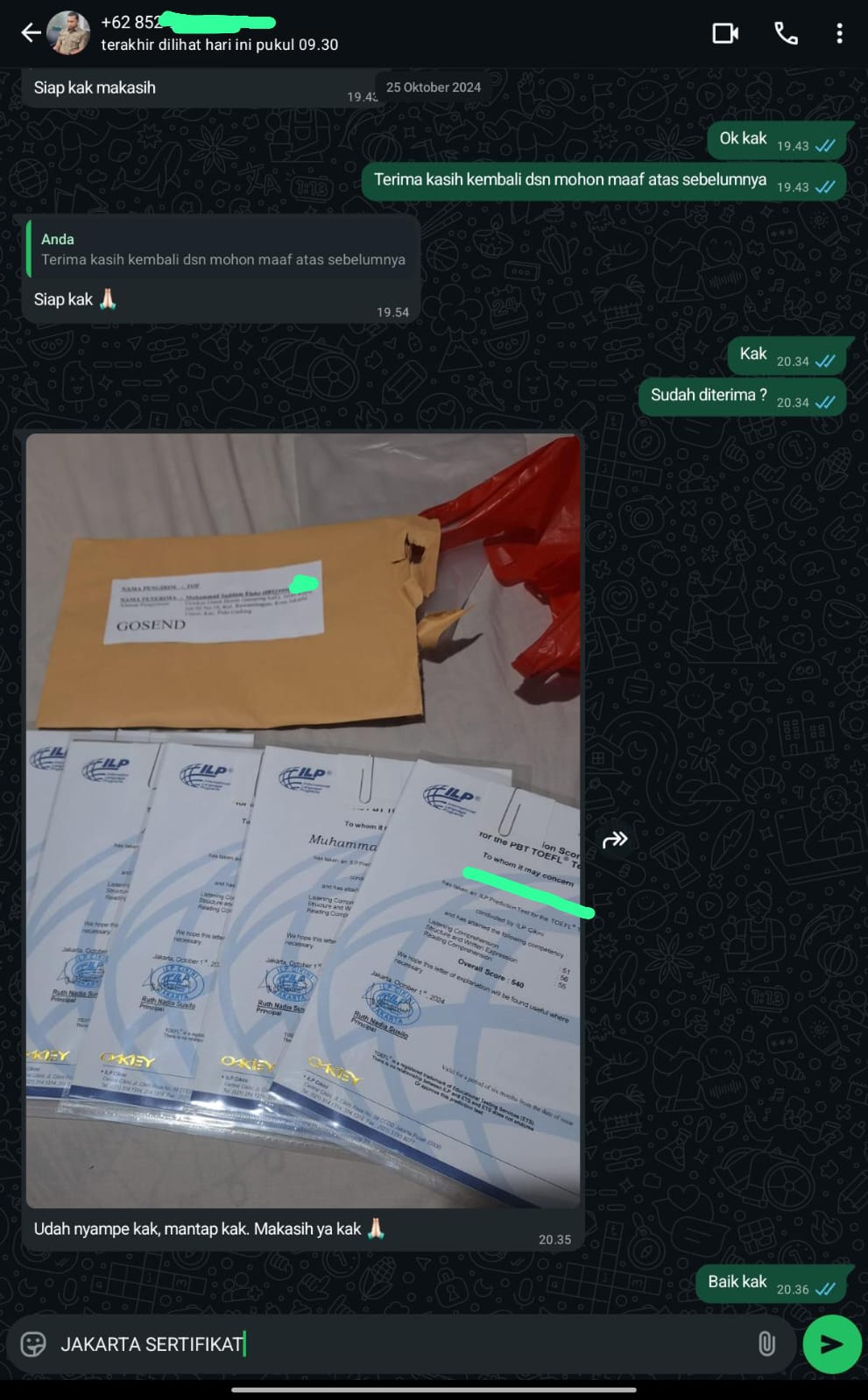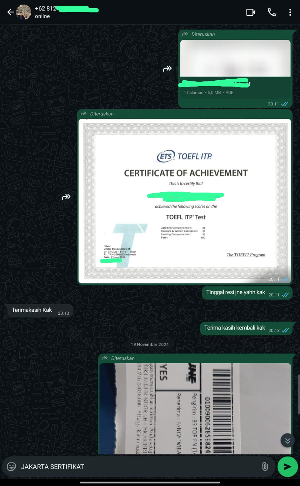 Jakarta Sertifikat adalah mitra terpercaya yang membantu Anda mendapatkan sertifikat TOEFL/IELTS resmi dan asli tanpa perlu repot mengikuti ujian. Cukup hubungi kami, sampaikan kebutuhan Anda, dan biarkan tim profesional kami menangani sisanya.